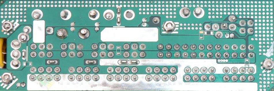 As usual, I’ll focus on the overall build quality and other things like electrical safety here, as the quality of the components that were used was already discussed before. The separation between the primary and secondary sides is good and there are a lot of drilled holes under the optocouplers and the isodriver to provide additional insulation. Neither the varistor or the thermistor are sleeved with heatshrink. But other components were well insulated, when they were close to each other at least one of them always has some extra tape or electrode/wire insulation (plastic or heatshrink tubing mostly). Under most of the transformers, there was also plastic pads for electrical insulation.